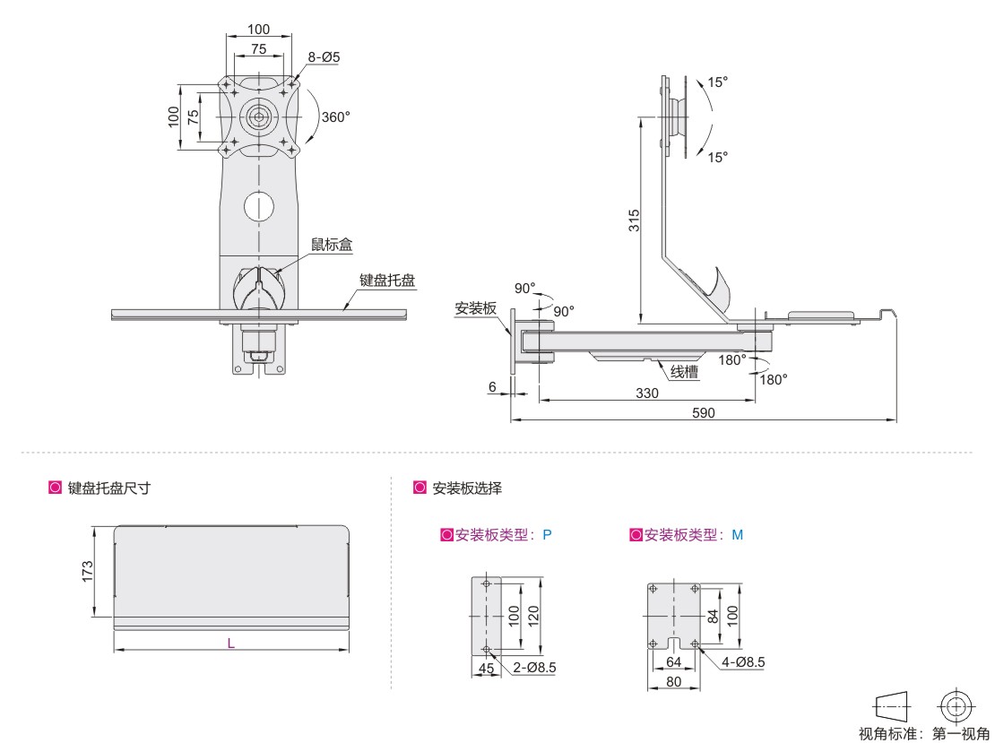 加固型显示器支架 通用键盘 单显示器 壁挂式安装 固定型•臂长330mm