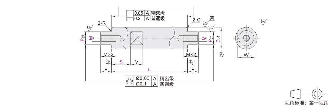 !精密级导向轴的台阶部带有研磨退刀槽(最宽1mm,最深0.1mm)。