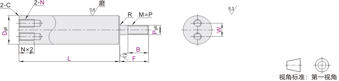 实心导向轴 一端内螺纹双孔一端外螺纹型 D公差g6