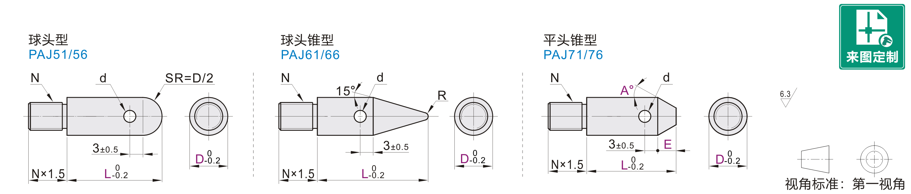 | 球头型球 头锥型 PAJ51 PAJ61 PAJ56 PAJ66 |