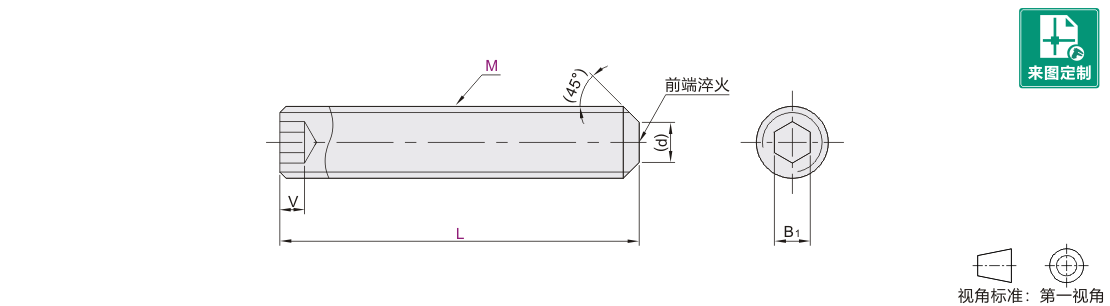 止动螺钉 内六角孔型 细牙 硬度38~43HRC