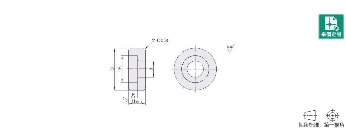 圆形挡块 沉孔型 尺寸指定型 S45C材质 硬度38~43HRC