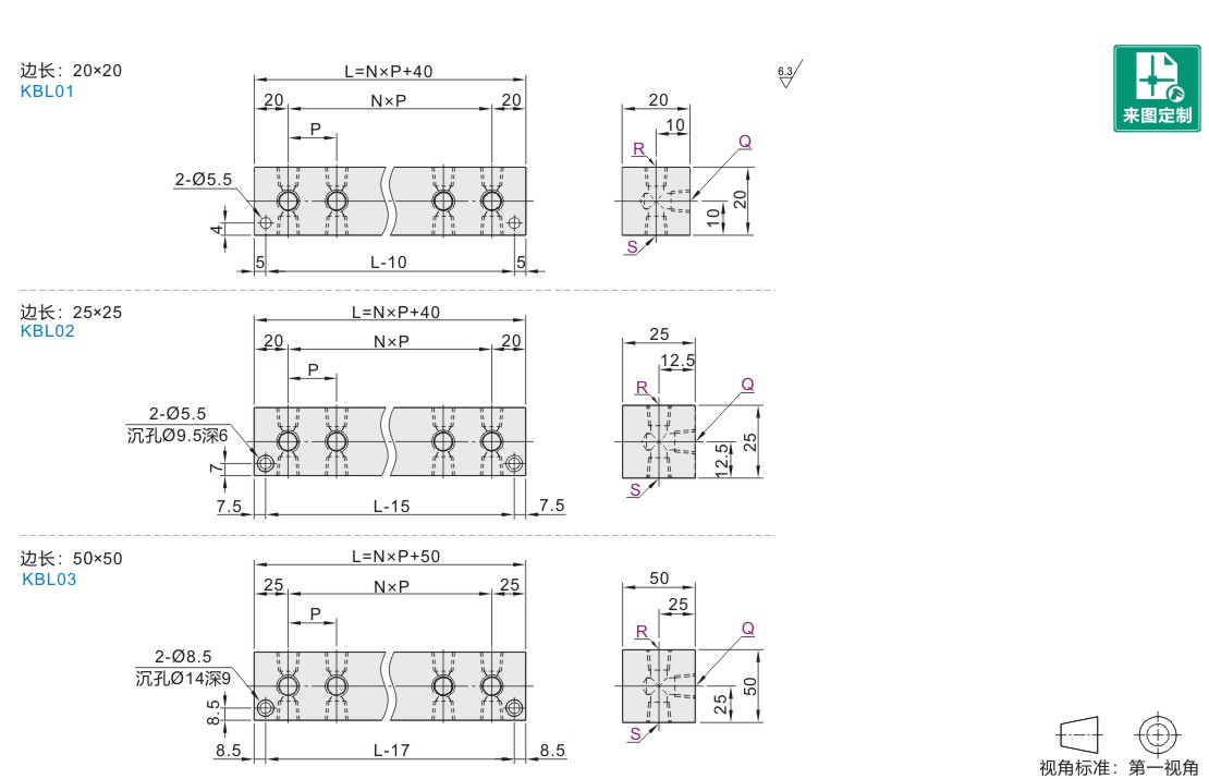 | KBL01 | T形端面无孔 | 间距固定型 | 20×20 | LF2 | A5052 | 本色阳极氧化 | 1MPa(≈10.2Kgf/cm2)以下 |
