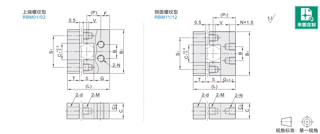 | RBM11 | 侧面螺纹型 | 发黑 | 内六角圆柱头螺钉 | ||
