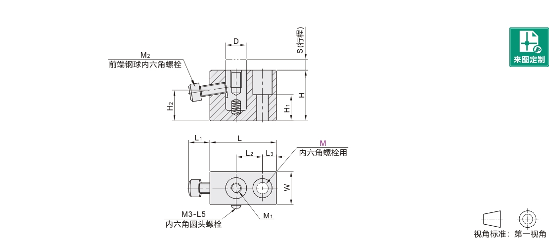 辅助支撑块 方形可调式 内六角螺栓型 沉孔型
