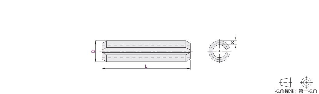 弹性圆柱销 直杆型带V形槽型 弹簧钢材质 硬度40~50HRC 发黑