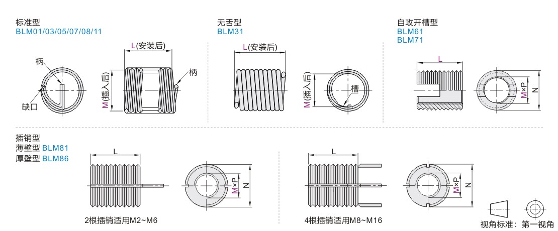 螺纹套 标准型/无舌型/自攻开槽型/插销型 粗牙/细牙