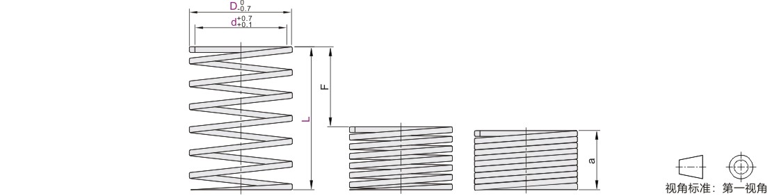 | 代码 | D | L | d | 压紧长度 | Fmm | 负载N | Fmm | 负载N | Fmm | 负载N | |