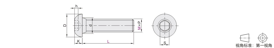 内六角平圆头螺钉 合金钢材质 强度等级10.9 三价锌 全牙 粗牙