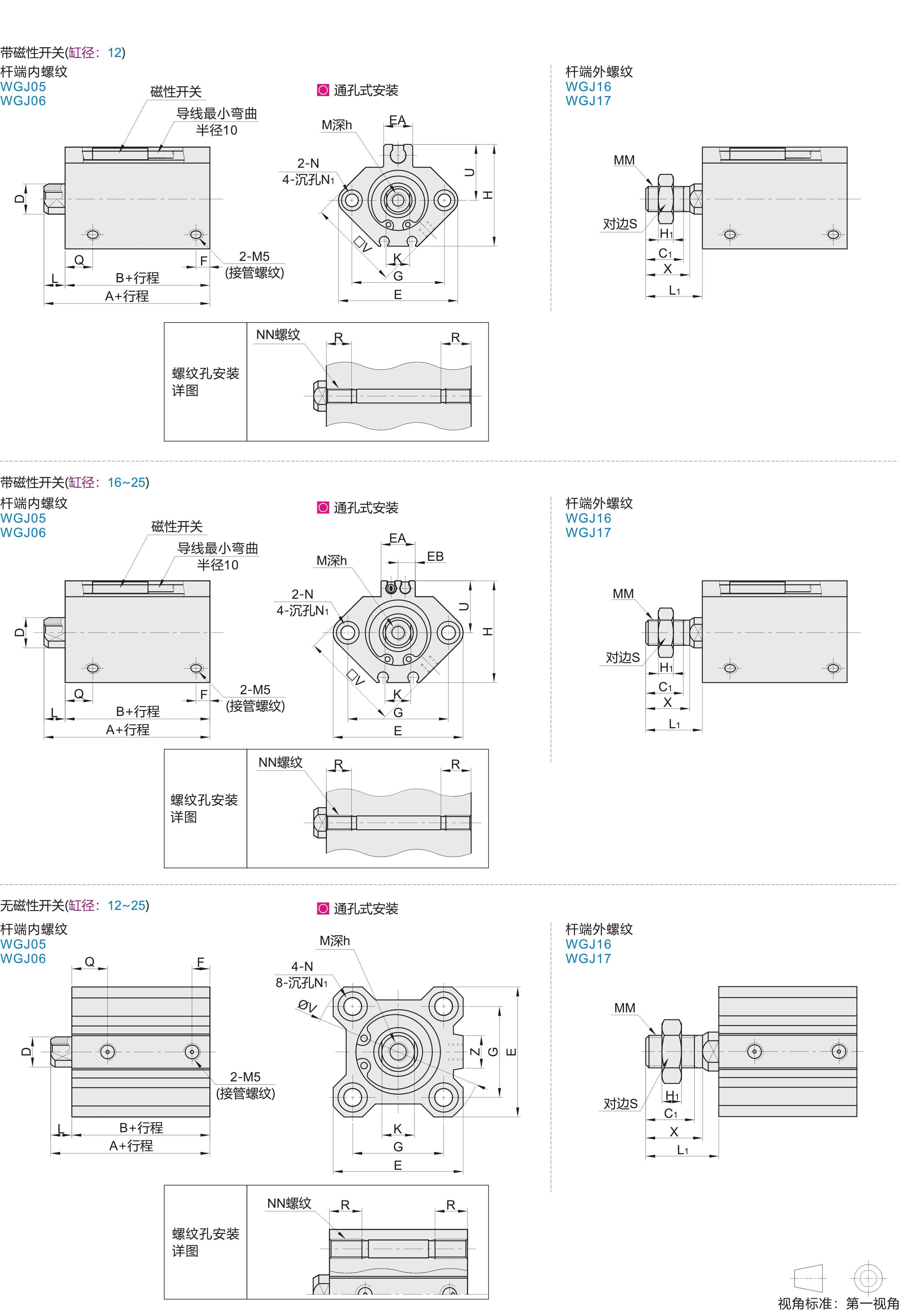 | WGJ05 | 单杆型 | 杆端内螺纹 | 通孔 | 双作用 |