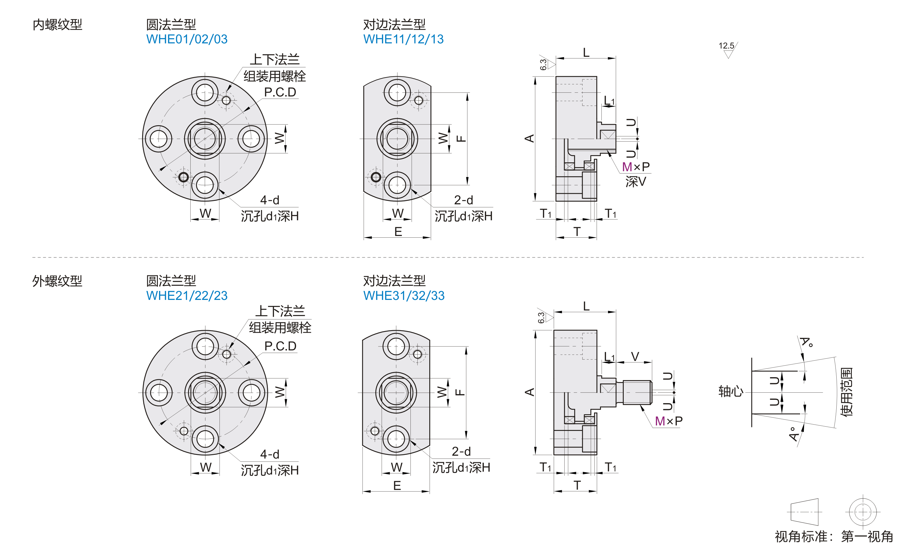 | 圆法兰型 WHE01 WHE02 WHE03 对边法兰型 WHE11 WHE12 WHE13 |