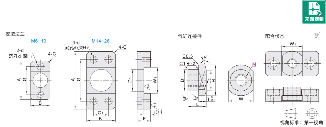 浮动接头 组件 安装法兰 气缸连接件 挡块 低硬度型 低硬度薄型 方法兰型 内螺纹型 倒角型