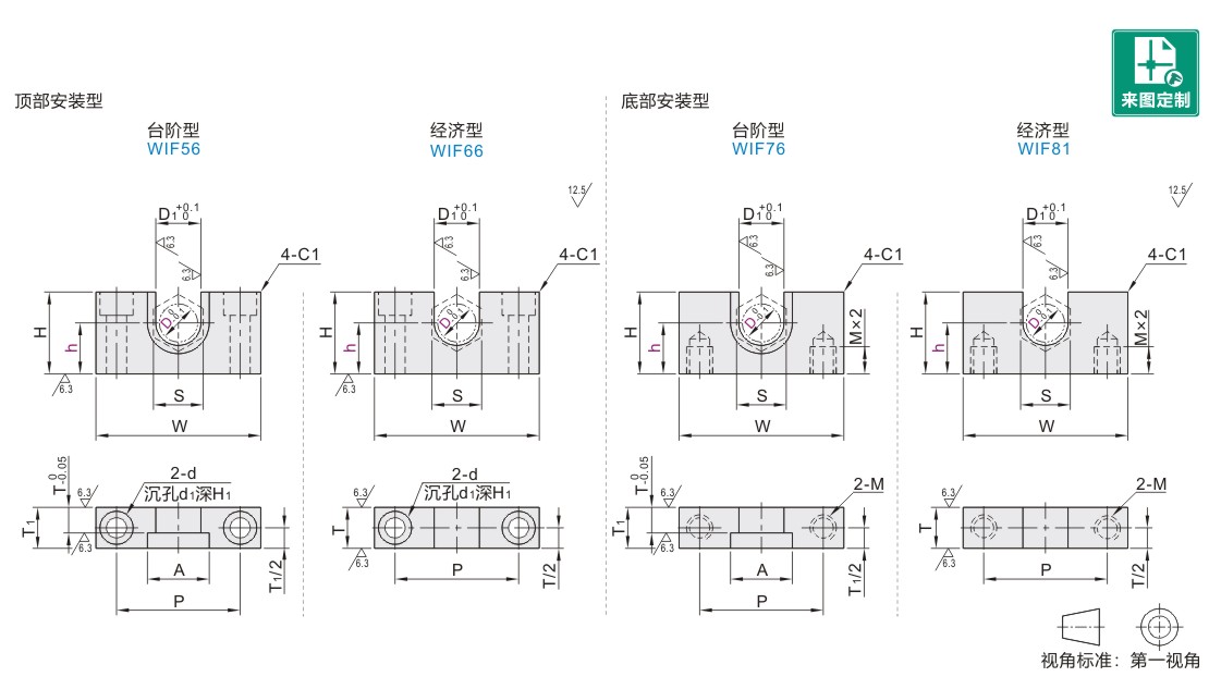 | WIF56 | 顶部安装型 | 台阶型 | 尺寸指定型 | 45 | S45C | 750HV~ | 镀硬铬 |