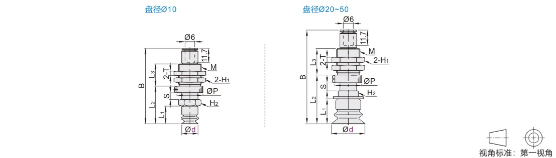 精密型 波纹型真空吸盘 弹簧式顶部真空端口 快速接头型