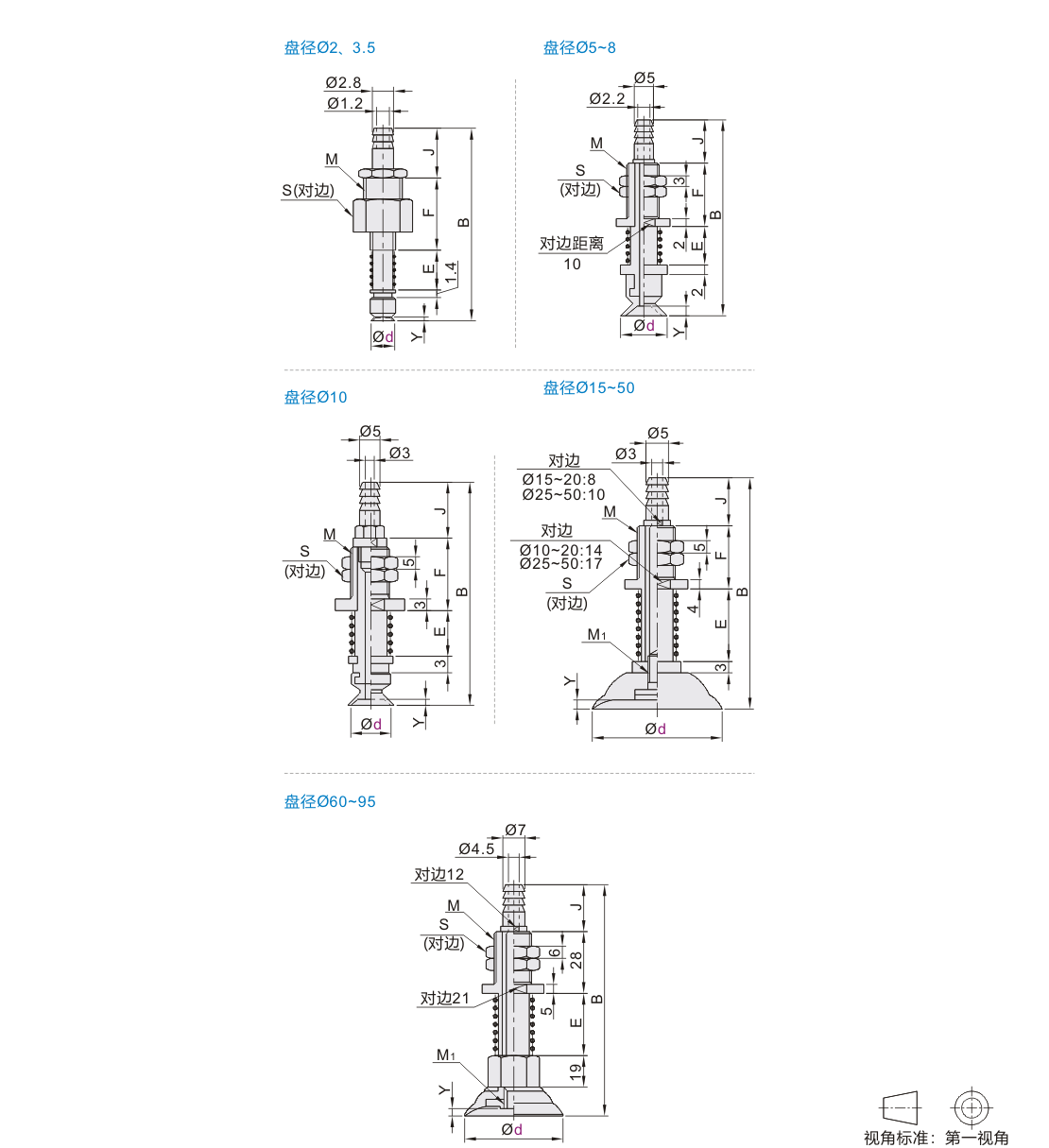标准型 单层型真空吸盘 直立配管弹簧型 倒钩接头接管型