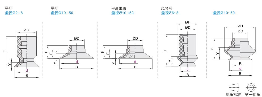 标准型 直立 水平真空口接管吸盘 吸盘 平形 平形带肋 风琴形