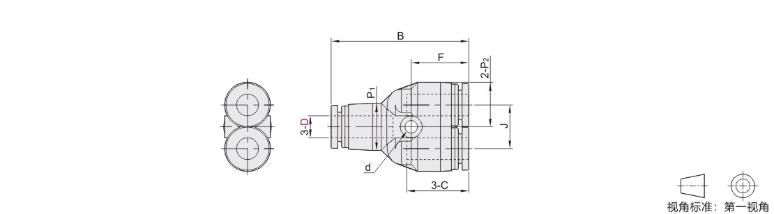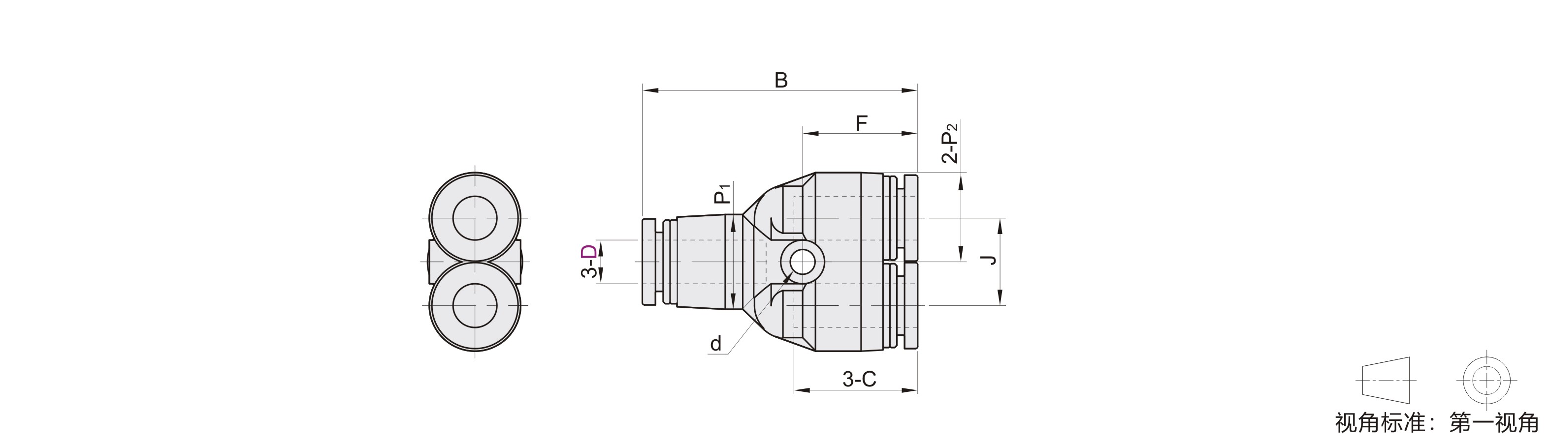 怡合达自营 精密型 快插接头 Y型三通接头 无螺纹型 PBT材质 快插型(等径)