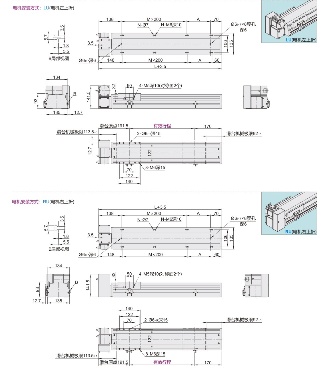 | LU (电机左上折) RU (电机右上折) |