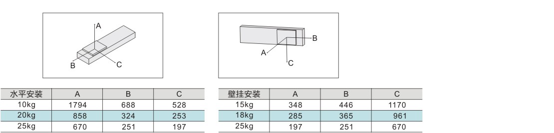 | 最大负载(kg) | 水平使用 | 25 | 25 | |