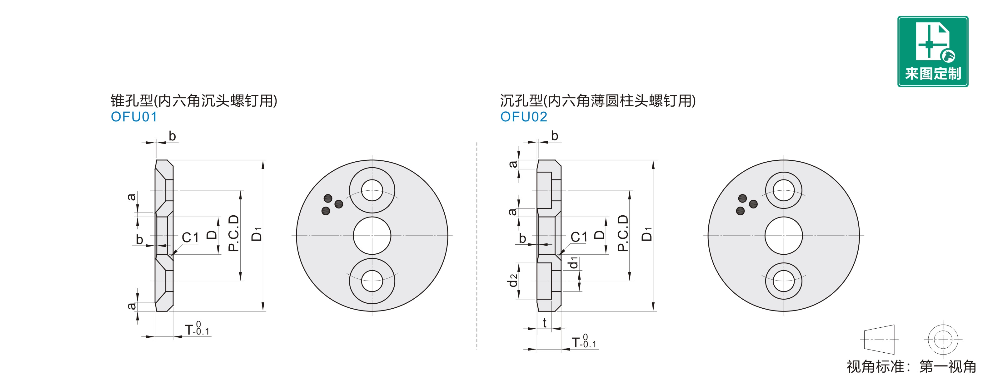 | OFU01 | 锥孔型 | 高力黄铜(SP2) 镶嵌固体润滑剂 |