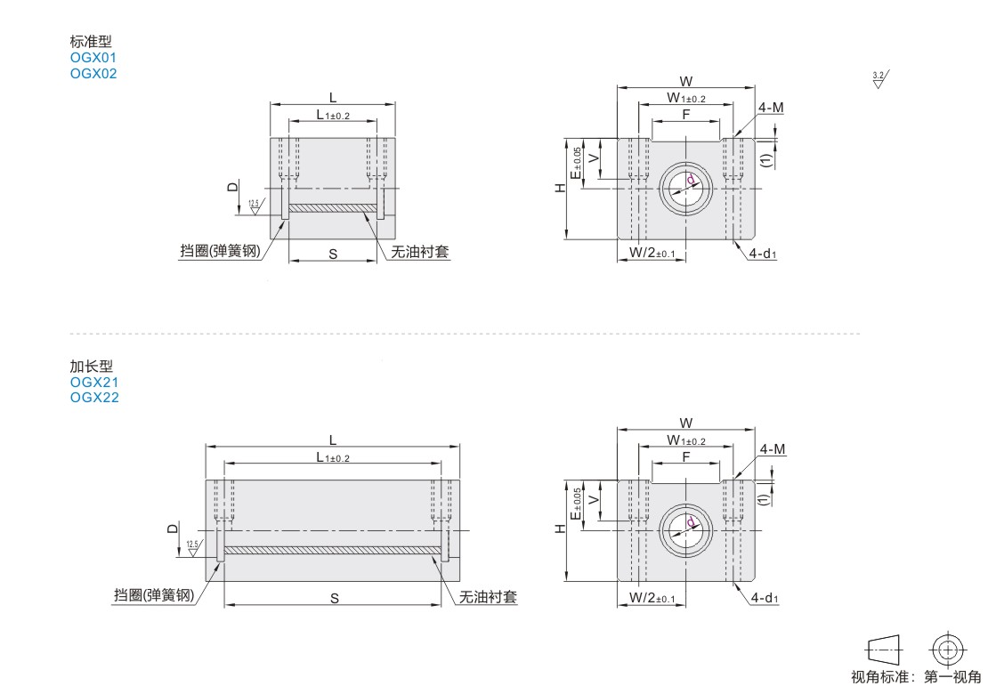 无油衬套组件 加宽方型 铝合金+铜合金材质 标准型/加长型 本色阳极氧化