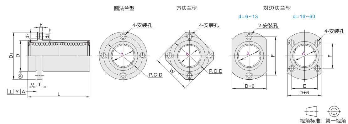 带法兰直线轴承 引导式 双衬型 SUJ2/SUS420材质 无电解镀镍/低温镀黑铬处理