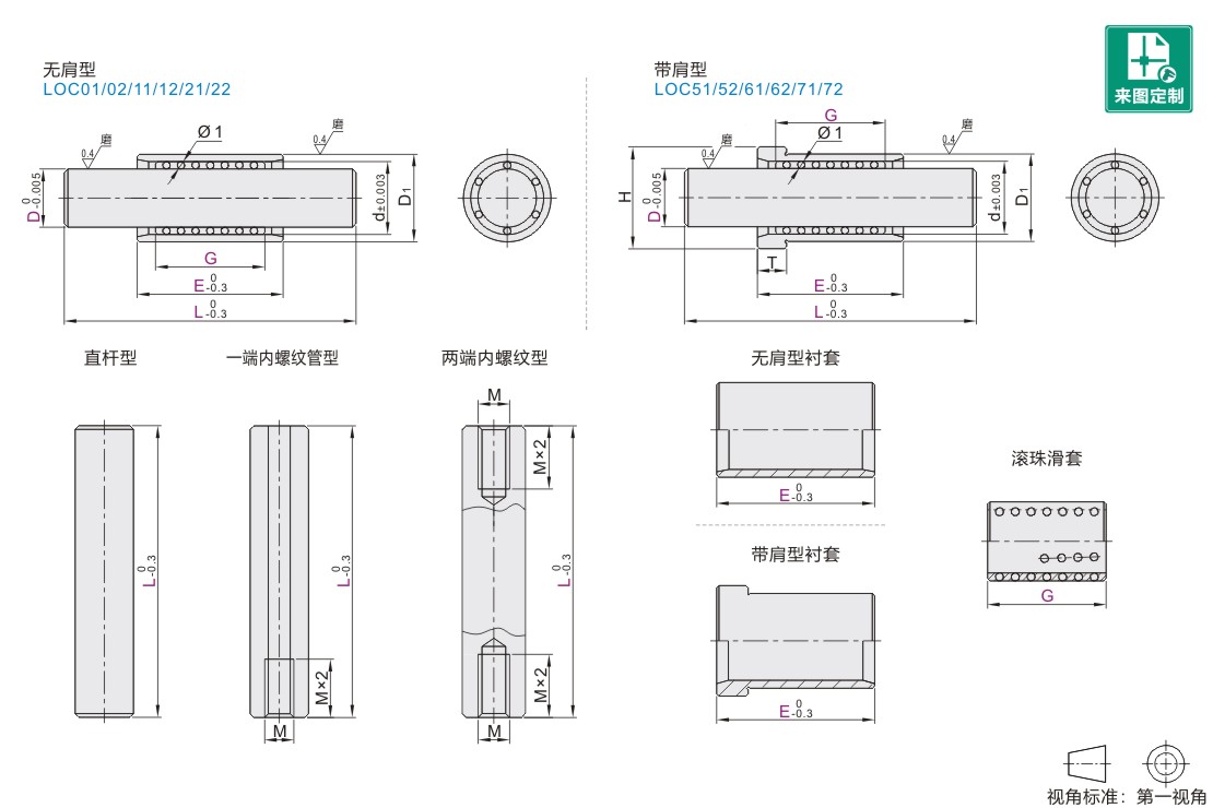 | LOC51 | 带肩型 | 直杆型 | SUJ2 | SUJ2 | C3604 | 58HRC~ | LOF01 | LOM21 | LOQ01 | |