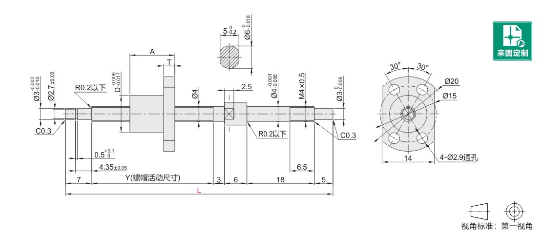 压轧滚珠丝杠 标准螺帽型 轴径4 导程1 精度C7
