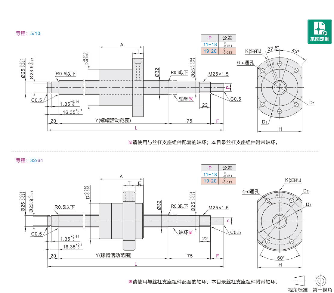 | 代码 | 丝杠轴径 | 导程 | 支座形状 | 推荐丝杠固定座 | 推荐丝杠支撑座 | ||||||||||||||
