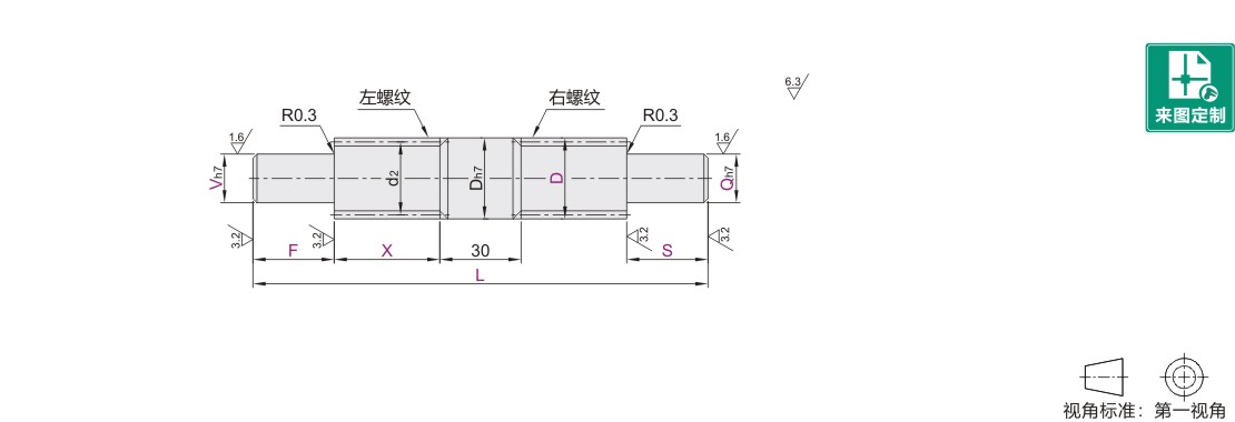 30度梯形丝杠 两端一阶型 一端左旋一端右旋 中部公差h7 标准型 发黑处理
