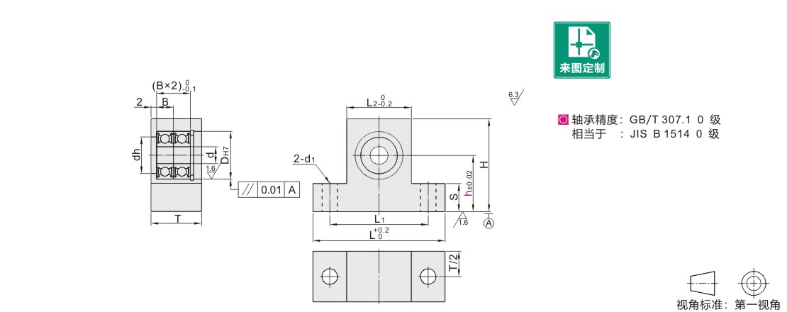 双轴承型轴承座组件适用于负载较大的使用环境,为转轴等传动类商品保持固定。