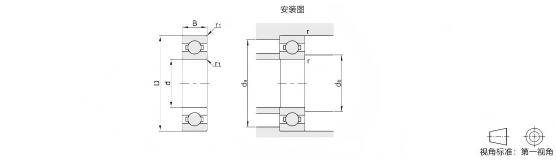 | 代码 | 轴承型号 | Cr(动) | Cor(静) | db(min) | da(max) | r(max) | ||||||