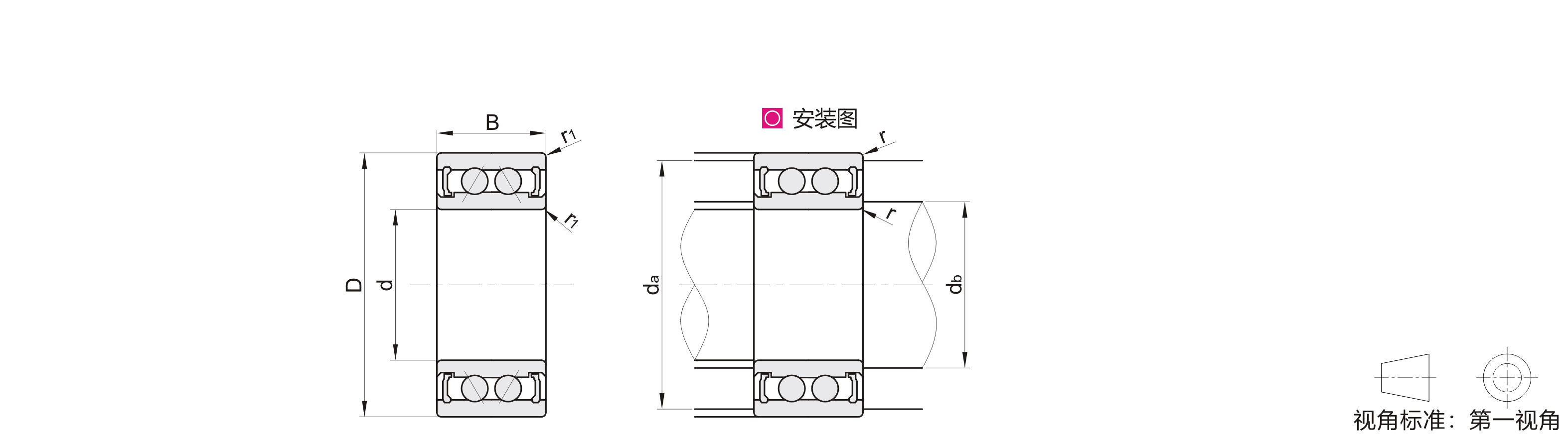 | 代码 | 轴承型号 | Cr(动)KN | Cor(静)KN | db (max) | da (max) | r (max) | ||||||