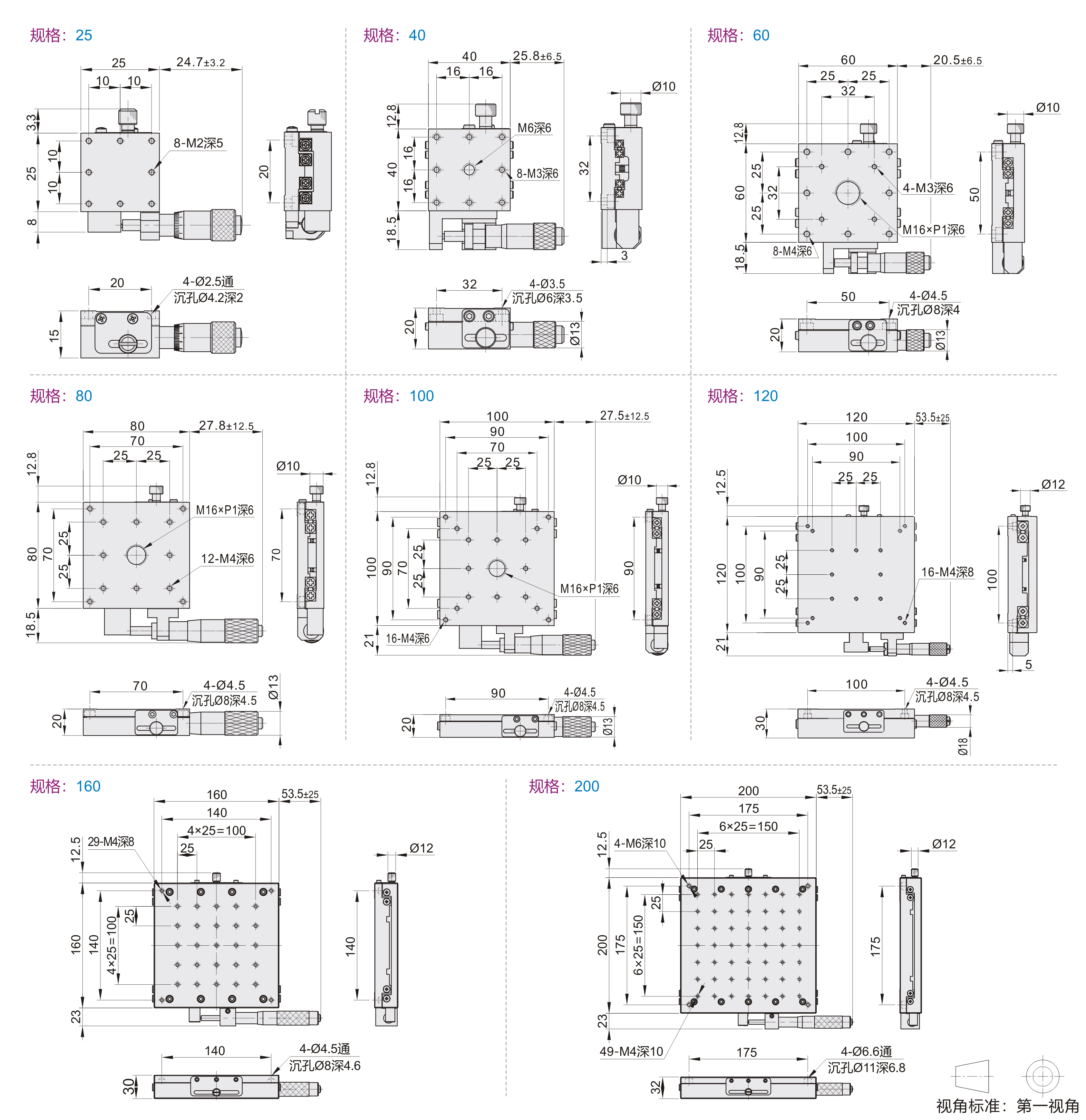 | EJA01 | 千分尺进给型 | X轴 | 铝合金 | 黑色阳极氧化 |