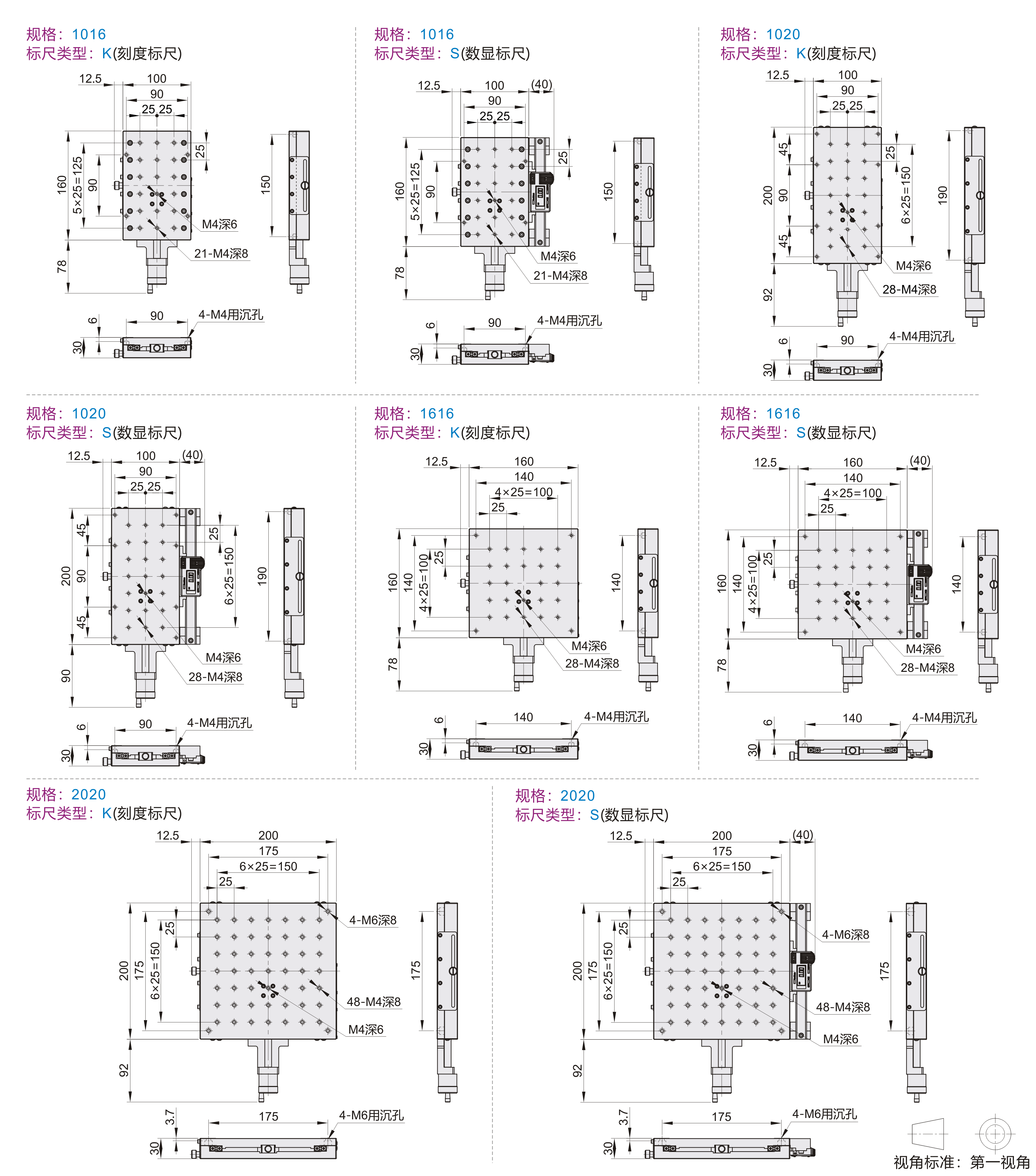 手动位移台 X轴 交叉滚柱引导式 精密研磨丝杠驱动式 精密型 铝合金材质 黑色阳极氧化处理