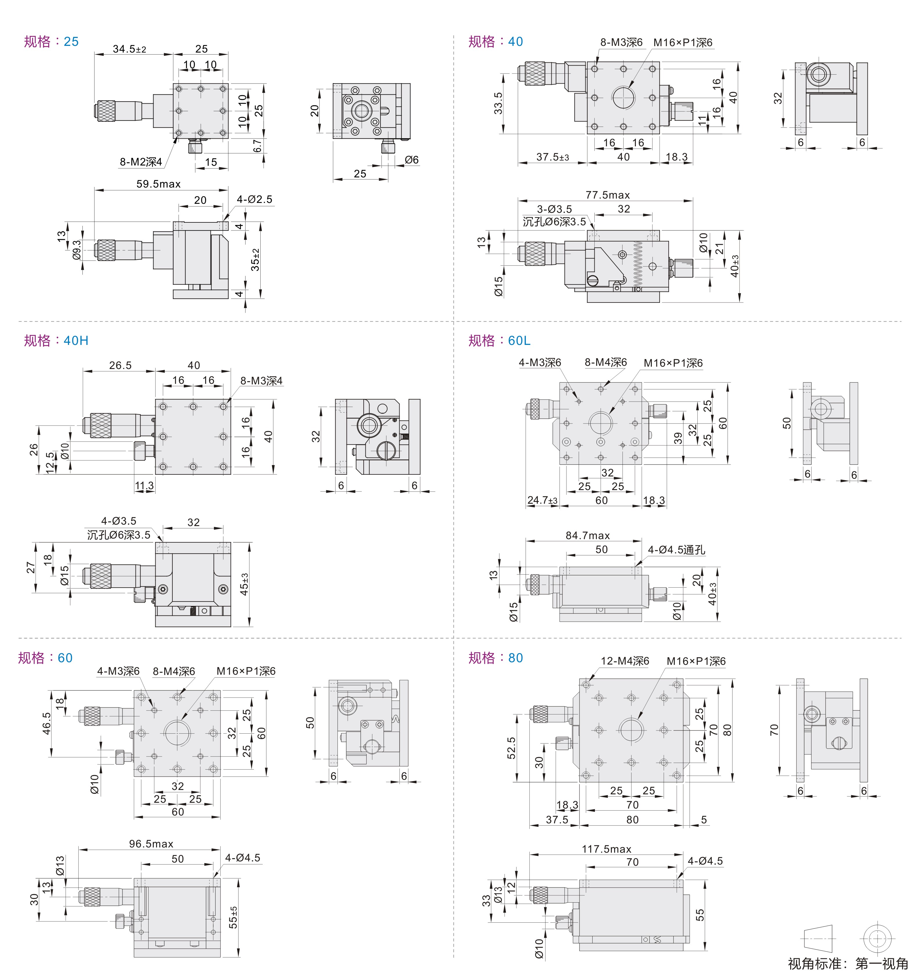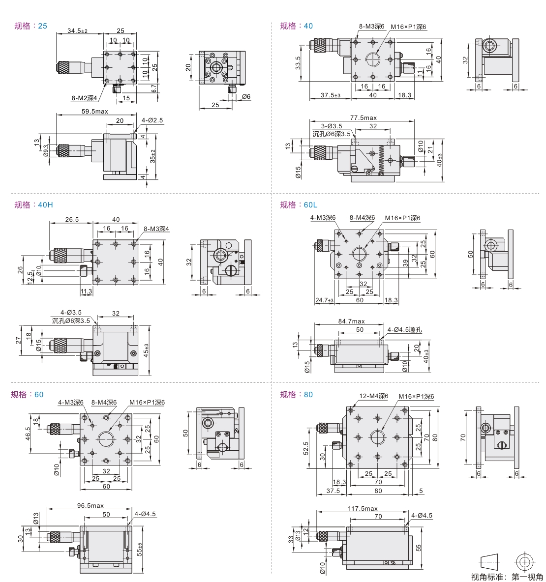 | EJW01 | 千分尺进给型 | 水平Z轴 | 铝合金 | 黑色阳极氧化 |