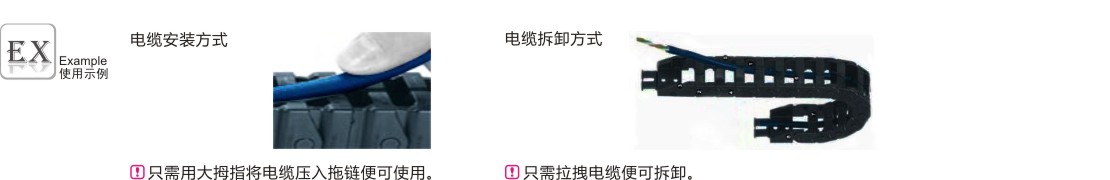 | 代码 | 类型 | 适用拖链内高 | 梳状板 | 材质 | 颜色 | 允许温度 | 阻燃等级 |