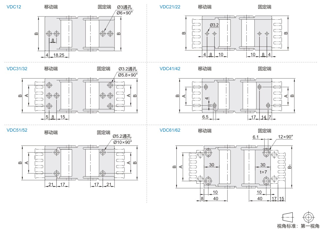 本系列拖链包含一套接头(移动端、固定端各一个)。
