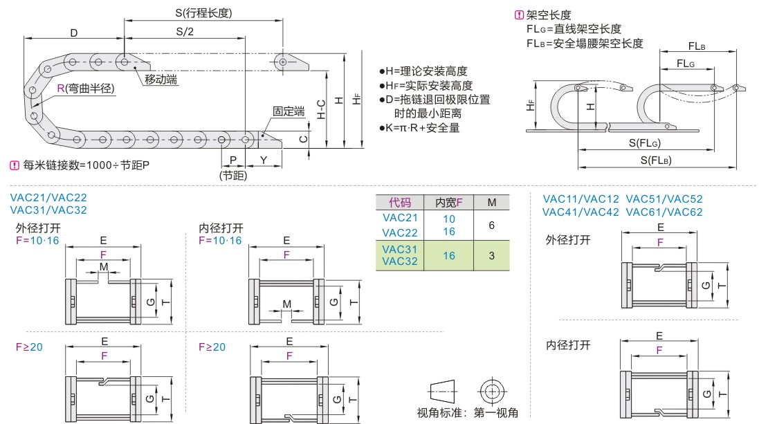 | 代码 | 拖链内宽F | ||||