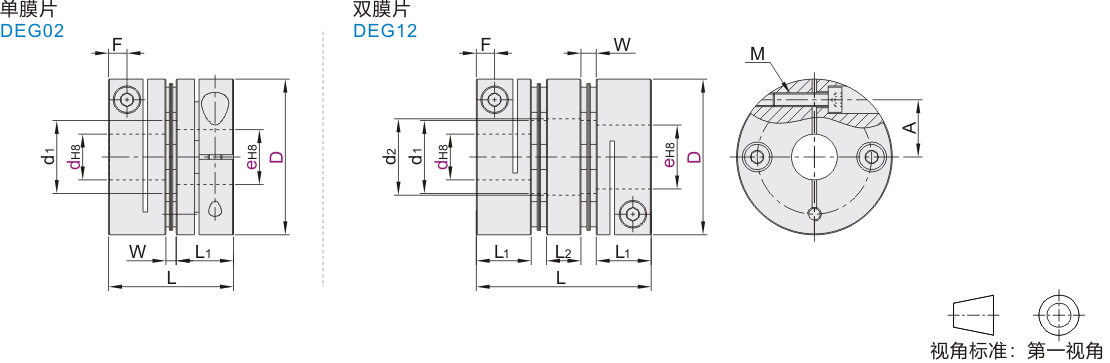 | DEG02 | 螺钉夹紧型 | 单膜片 | 铝合金 | 不锈钢 | 本色阳极氧化 | 内六角圆柱头螺钉 |
