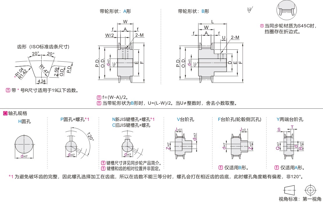 选购新JIS键槽孔+螺孔的轴孔直径10时 ,键槽尺寸可选择N-d10或N-d10K(请参阅同步轮产品简介)。