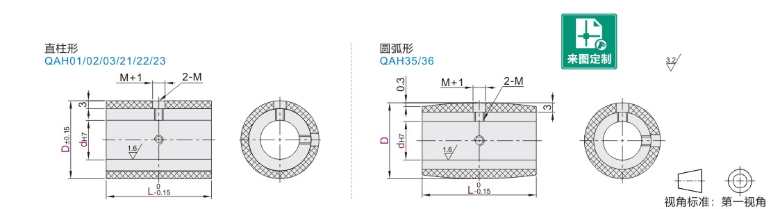 | QAH01 | 直柱形 | 带螺纹孔型 | SUS304 | 聚氨酯 (自然色) |