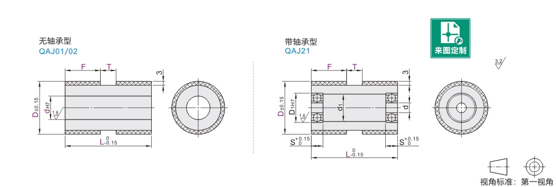 包胶滚轮 直柱型 带槽型 无轴承/带轴承型