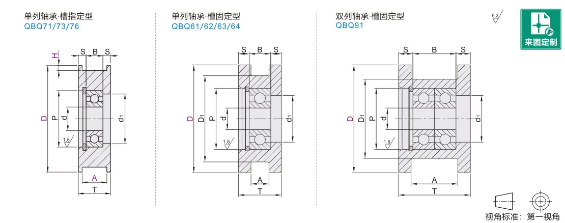 | 型号 | A | H | d | d1 | P | T | S | B | 使用轴承 | |