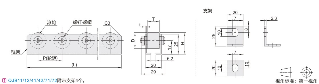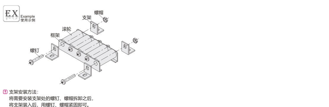 | 滚轮/轴承/螺钉·螺帽 | 框架 | 支架 | 滚轮/螺钉·螺帽 | 支架 | ||||