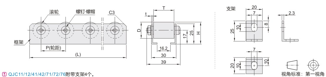 | 滚轮/轴承/螺钉·螺帽 | 框架 | 支架 | 滚轮/螺钉·螺帽 | 支架 | ||||