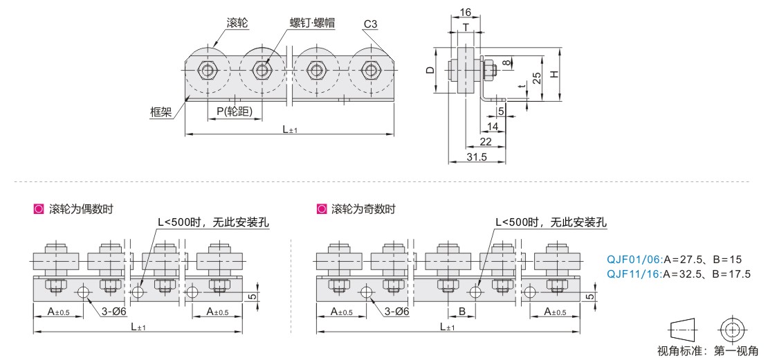 ● 安装孔数随全长L变化,详细见规格表。