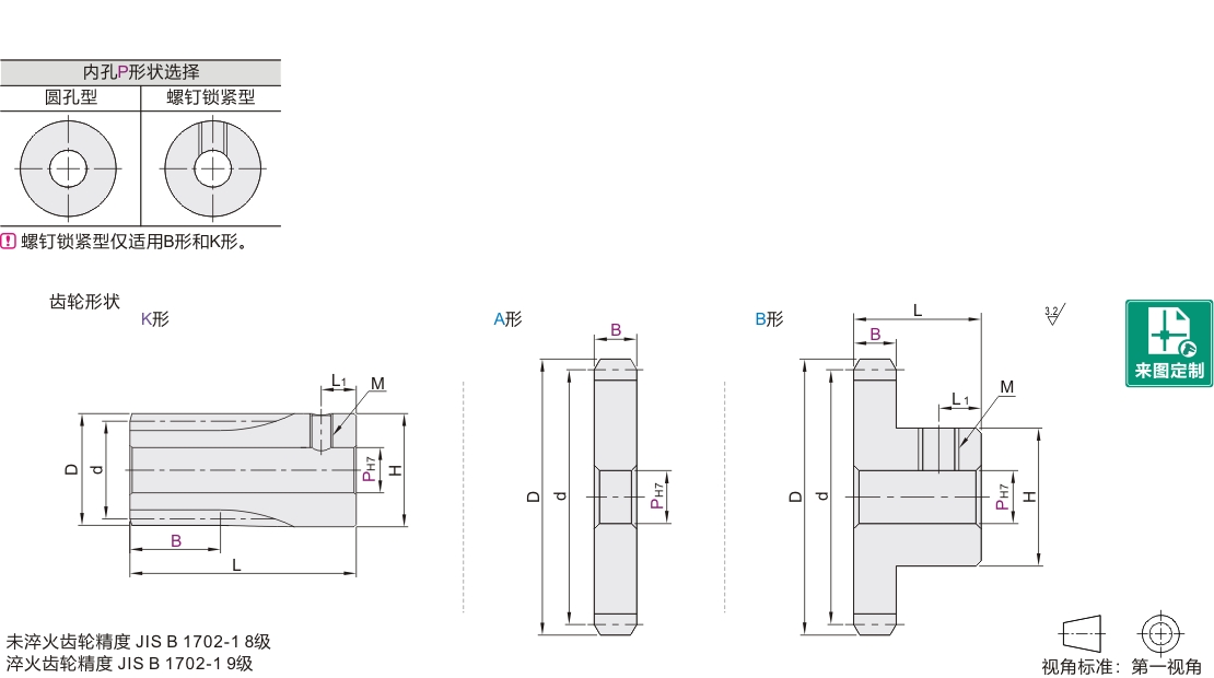 齿轮内孔直径P(mm)