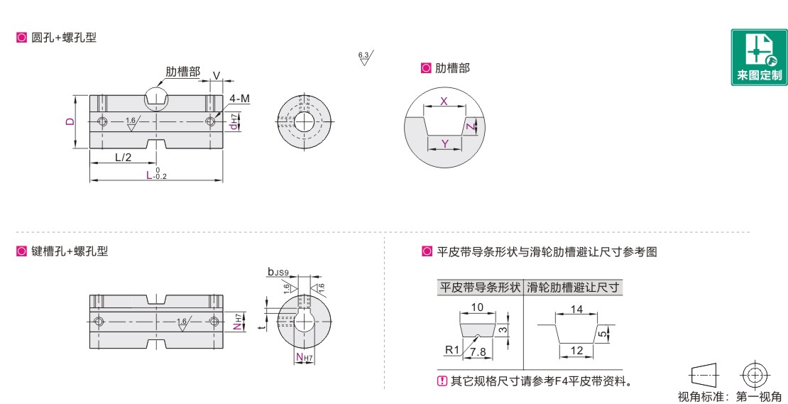 平皮带用滑轮 带肋槽型 L=40-100 标准型 本色阳极氧化处理