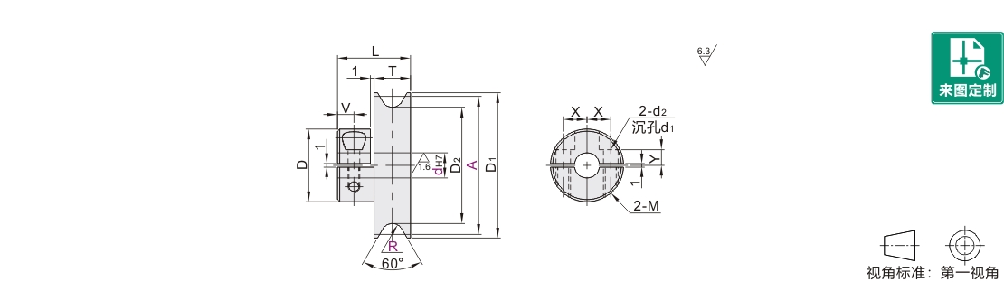 圆皮带用滑轮 U形槽 分离式夹紧固定型